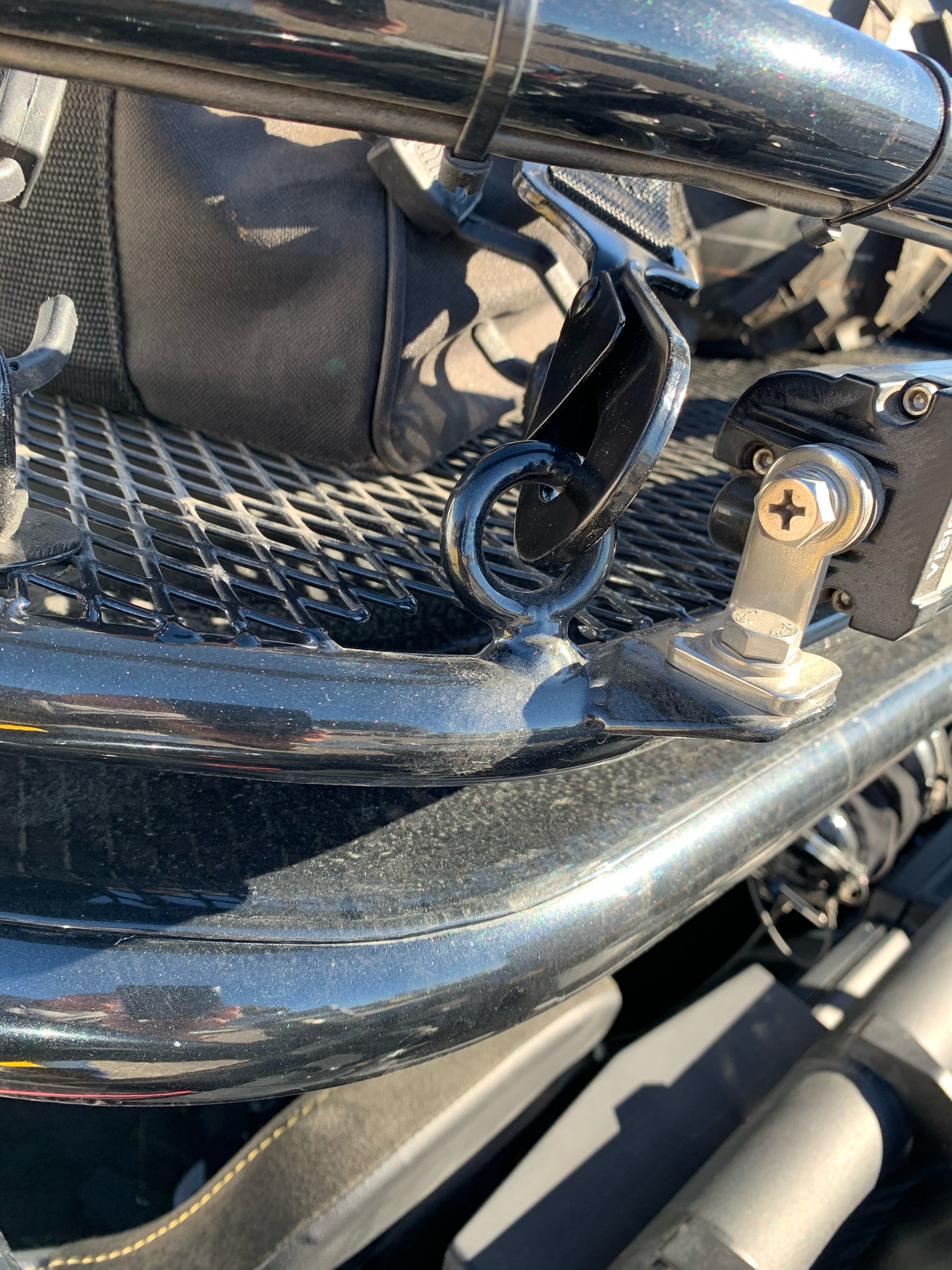 This heavy duty hold down has a great deal of adjustability. Can be shortened up to 38” and extended over 80” for the biggest tire/wheel combination.