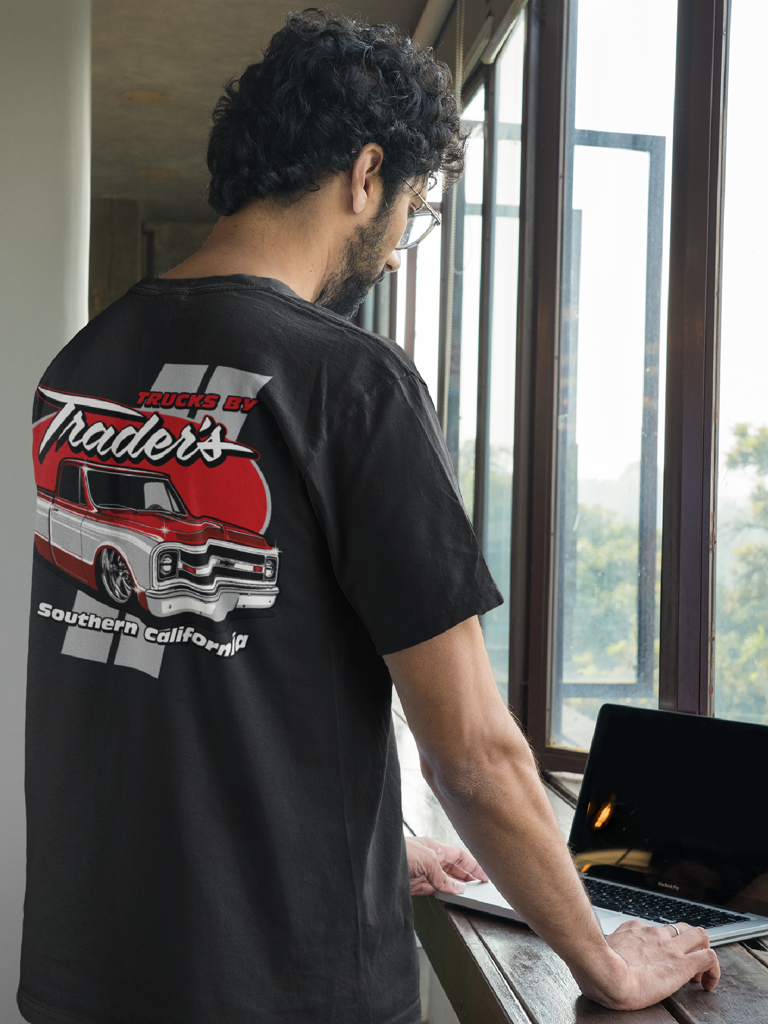 Introducing our exclusive Trucks by Trader's Southern California C-10 design, now featured on a premium quality t-shirt. This eye-catching graphic captures the essence of vintage charm and Southern California's automotive culture.